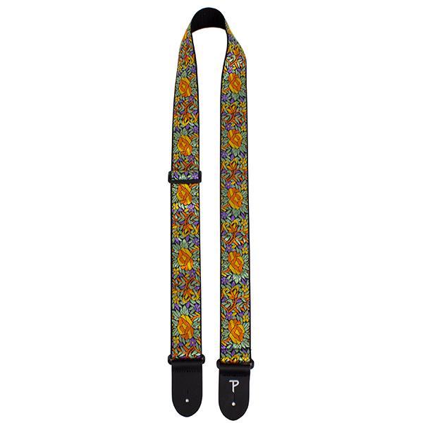 PERRI’S Leathers – 2″ FLOWERS ON BLACK JACQUARD WITH LEATHER ENDS